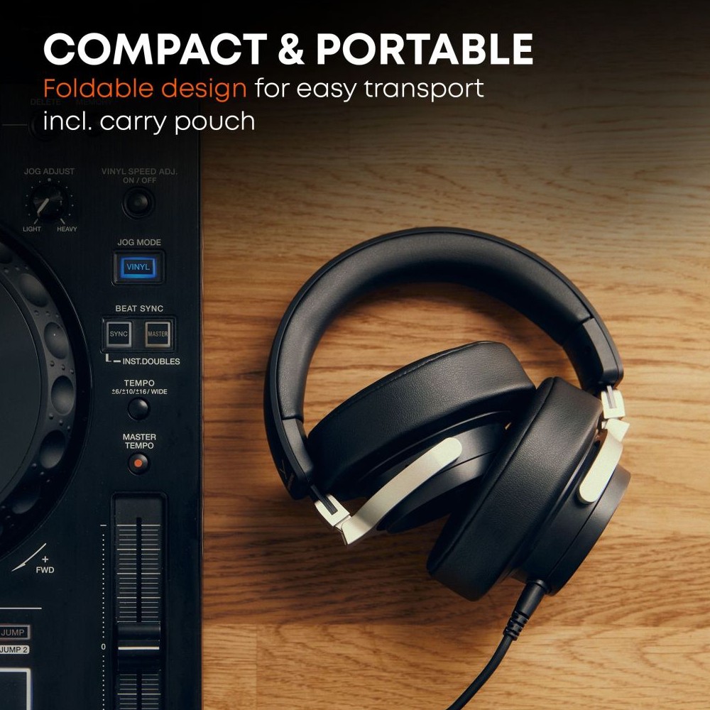 - Long-term investment with replaceable components (headband, ear pads, cable); compact and portable thanks to a foldable design and carrying bag