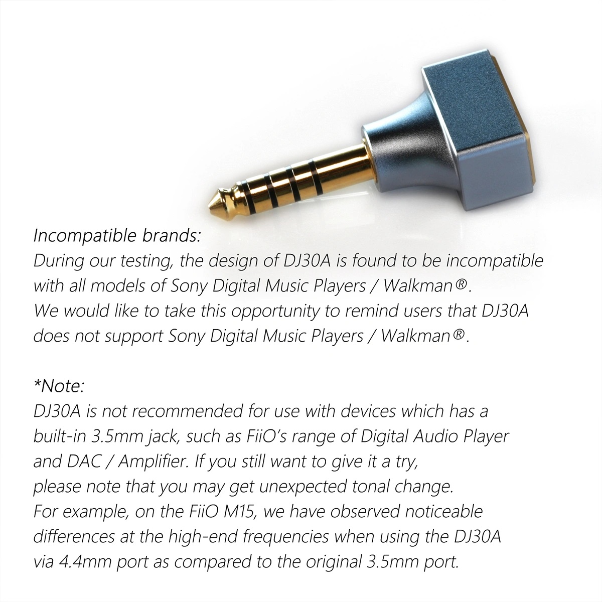 Important Notice: Incompatible with Sony audio players, and tonality change if used with devices also built-in with 3.5mm jack. Recommended to audition it prior to purchase.