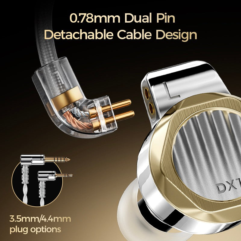- 0.78mm dual pin detachable cable design - 3.5mm or 4.4mm plug options