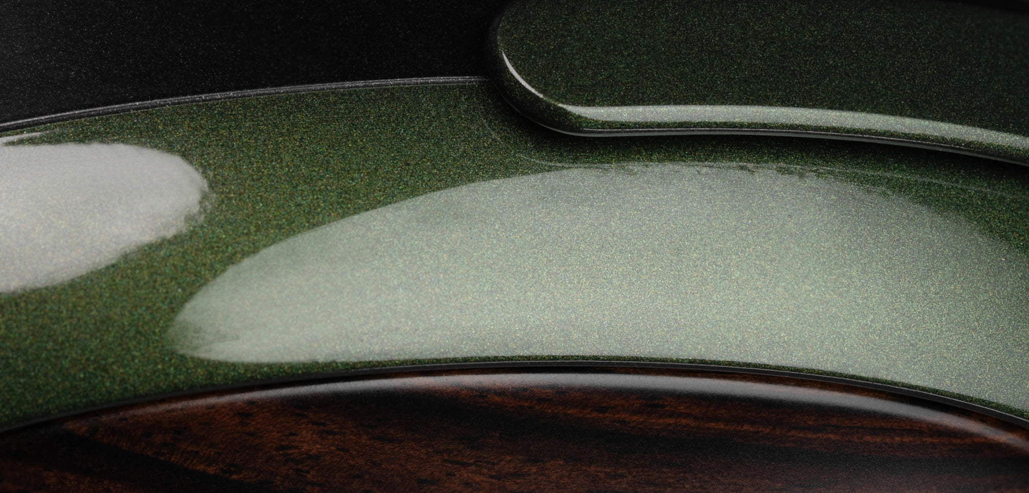 - Hand-painted in-house in a deep, refined shade of green with metallic particles