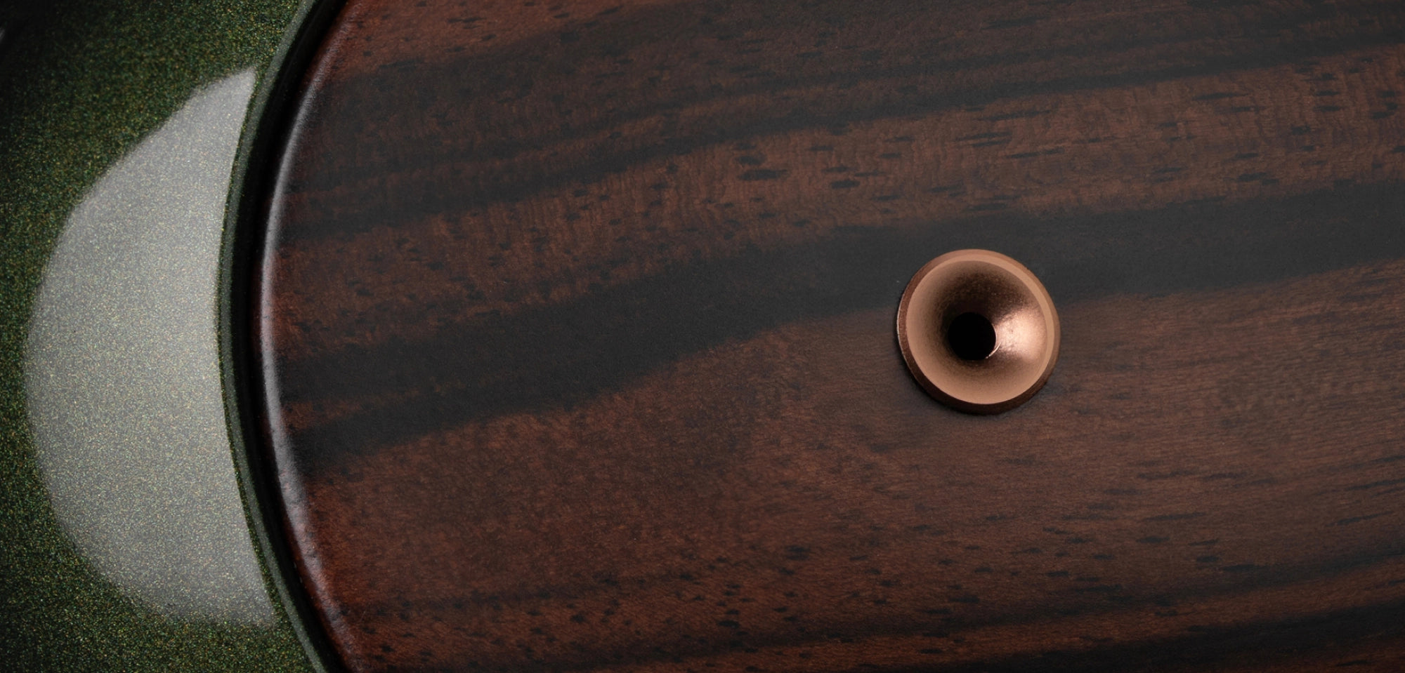 - Premium materials: magnesium, zinc, Macassar ebony wood, and leather