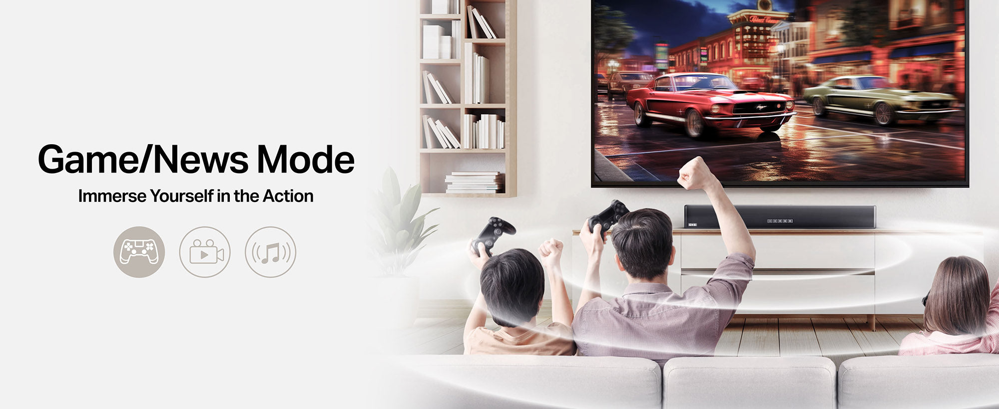 OXS S3 home audio speakers can improve TV sound with multiple preset EQ settings, to get you High-quality musics and get extreme gaming experiences. You can tune your tv speakers sound bar to 3 different equalizer modes ( Movie mode, Music mode, News/Game mode) via button or remote to get the best audio performance.