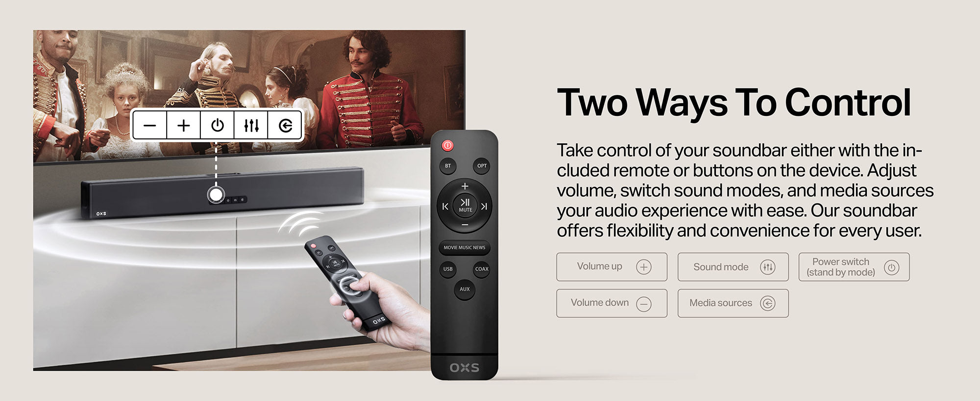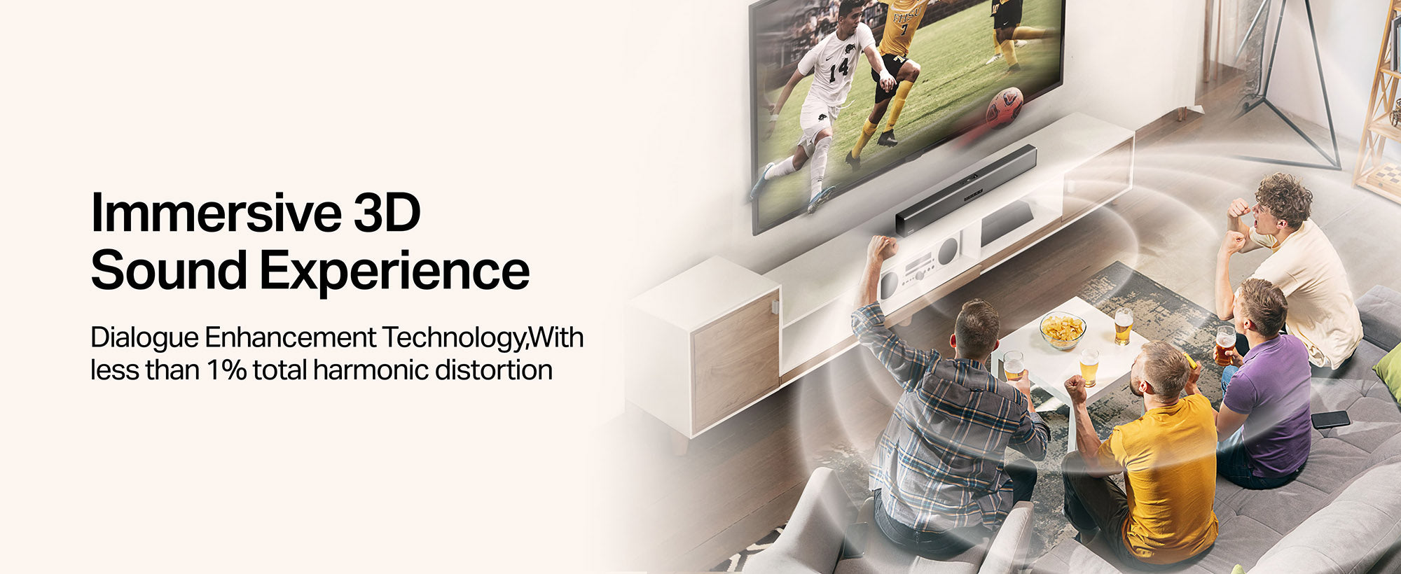 OXS S3 soundbar for TV with Dialogue enhancement Technology can make details stand out. With less than 1% total harmonic distortion provding the sound reproduction better than most products on the market to let you hear every music notes beating on each music performance and not miss nothing on each dialogue. The soundbar is a great solution for your high-performance audio needs, let you enjoy at home as if you are on the Cinema Scene!