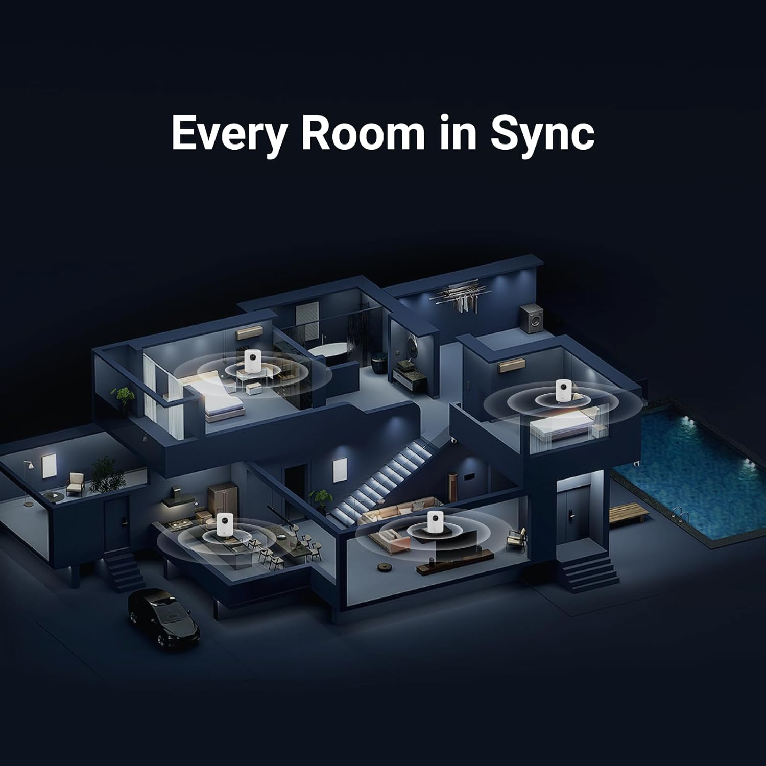 - Audio Quality: Supports high-resolution audio playback up to 24-bit/192 kHz with a 4-inch woofer and dual tweeters. It uses AI RoomFit™ calibration to automatically optimize the sound for your specific room acoustics.