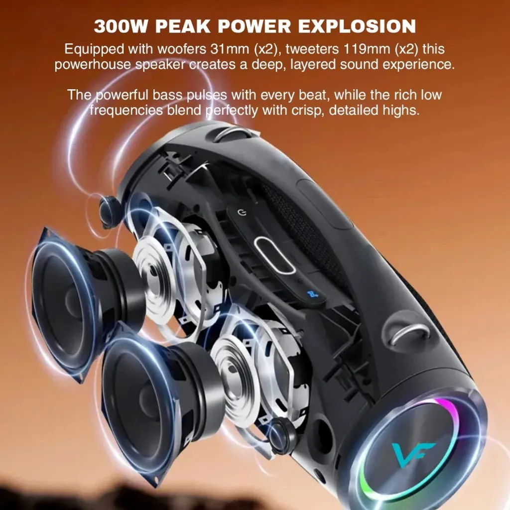 - 300 W High-Power Audio Output – Delivers room-filling, punchy sound with Hi-Fi clarity and DSP Bass Boost.