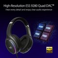 - HIGH SNR POSITIONAL AUDIO - Designed for RPG and FPS gaming, an unprecedented 130 dB SNR ― a spec unattainable by single DAC headsets. With exclusive 50 mm ASUS Essence drivers and airtight chambers, a deep and powerful bass precisely pinpoints the origin of gunfire or explosions on the battlefield.