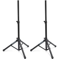 - Two heavy duty, telescoping speaker stands, each with tripod base