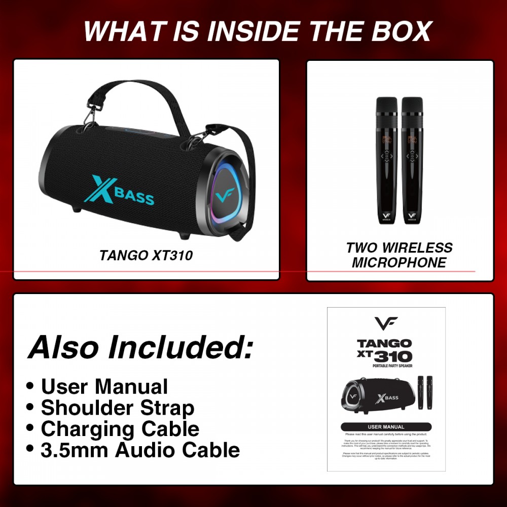 Vinnfier Tango XT310 X-Bass Wireless Bluetooth Portable Speaker with Dual Wireless Handheld Microphones