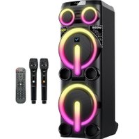 - + Karaoke System: Enhances entertainment options with an included wireless microphone and a built-in 6.35mm microphone jack, perfect for parties and social gatherings.