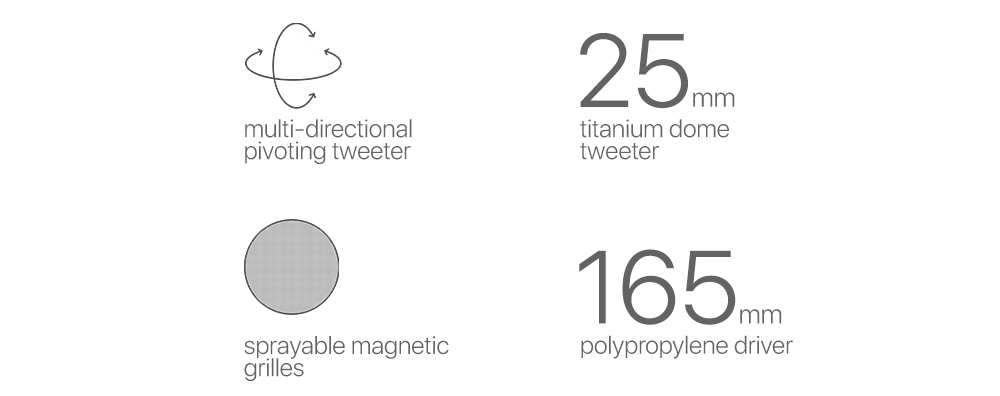 - The trimless exterior design with magnetic micro-perforated grilles ensures a seamless blend between wall or ceiling and speaker